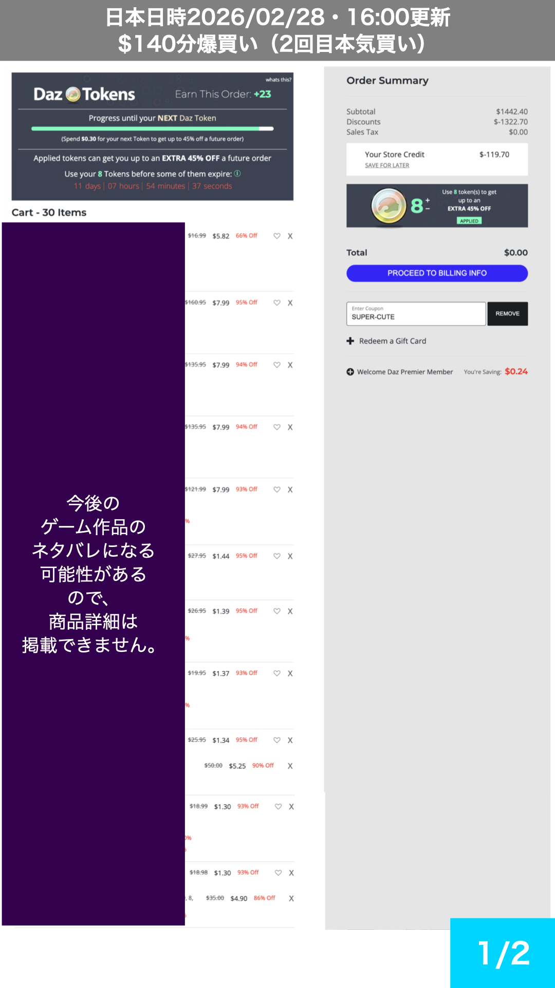 2回目決済(SUPER-CUTEクーポンと8トークン使用で大幅割引)