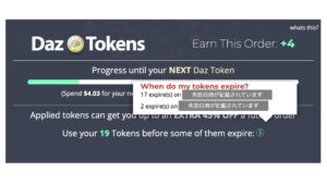 今日初めて気がついたのですが、トークンは獲得した日からそれぞれでカウントされて、失効するようです。間違ってるかもですが、獲得したトークンは14日で消滅してしまうようです。