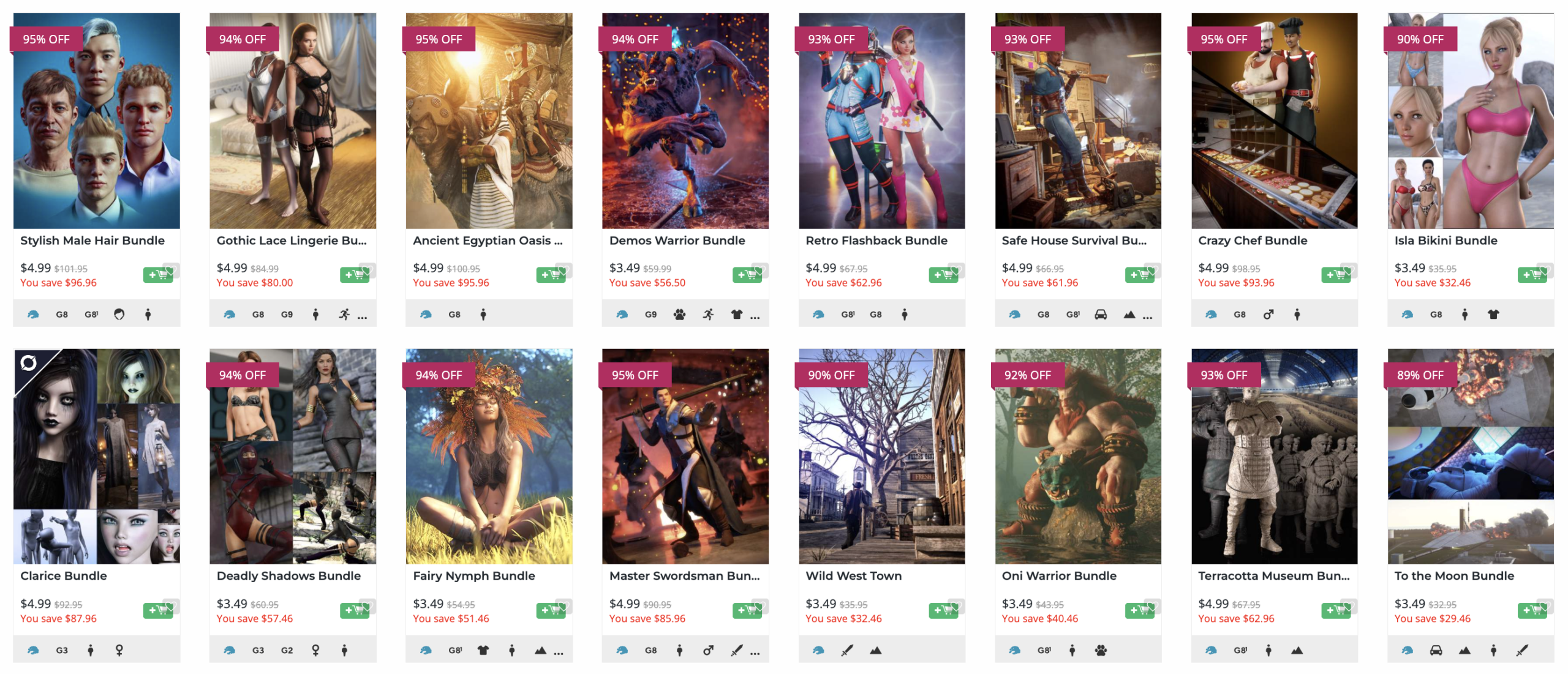 と、この様に、バンドルでインタラクティブライセンスを購入するのが圧倒的にお得です。ゲーム制作目的でDazShopのアイテムを購入するのであればまず、バンドルのインタラクティブライセンスを狙うのがお得にお買い物をする上で欠かせません。