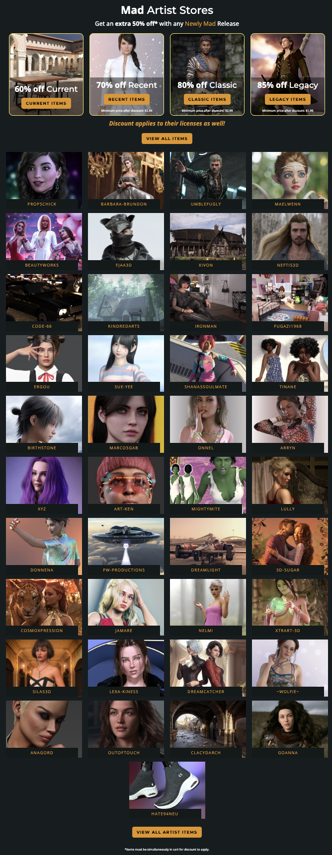 GoldStarの維持だけを考えると「 Mad Artist Stores 」で表示価格が$3以下ぐらいの製品を購入するのが、最も効率的です。価格の低いもの順から$4付近までのアイテムを物色しましたが、チラホラ買ってもいいかな〜?というアイテムが2-3個発掘されました。