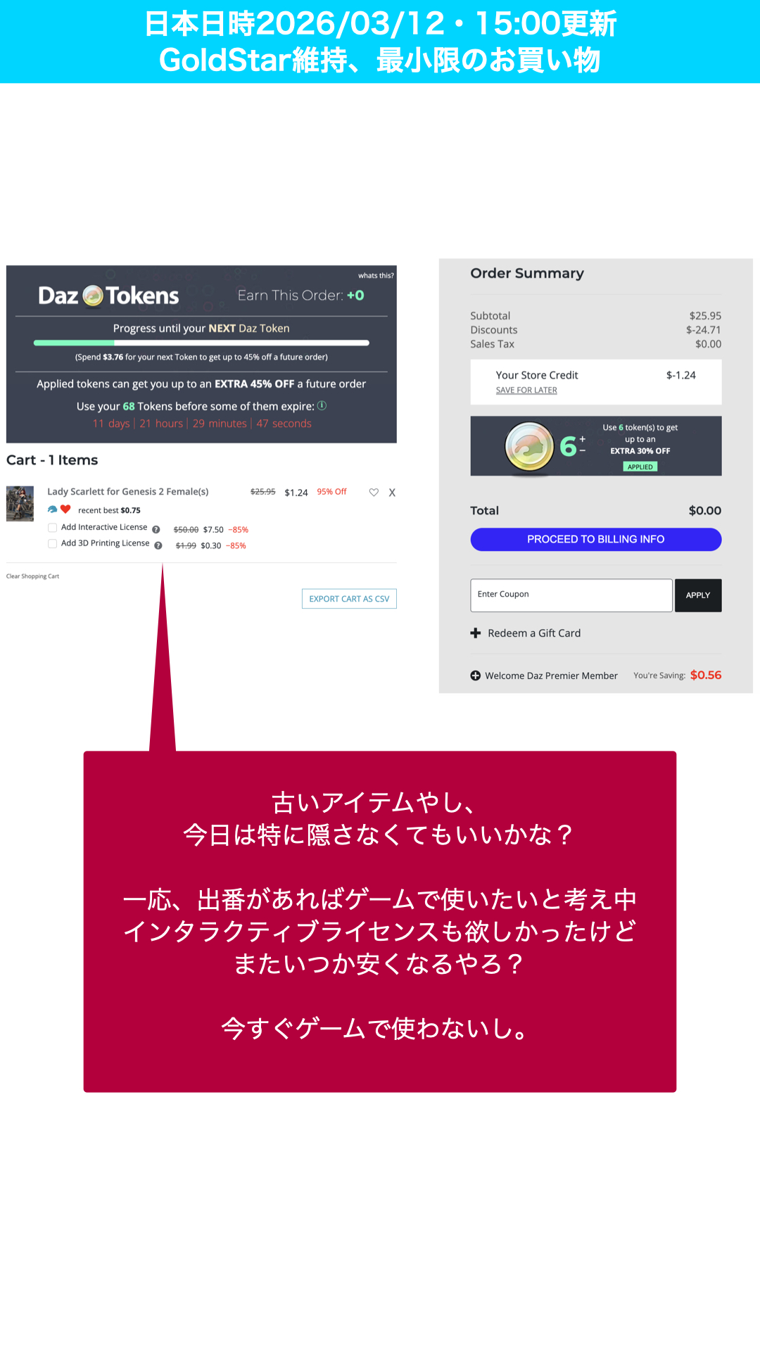 日本時間・2026/03/12・15:00更新のDazShopセール