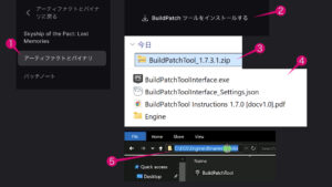 - 「 BuildPatchTool_1.7.3.1.zip 」というファイルがダウンロードされます。(ダウンロード時期によってバージョンは異なると思います。)