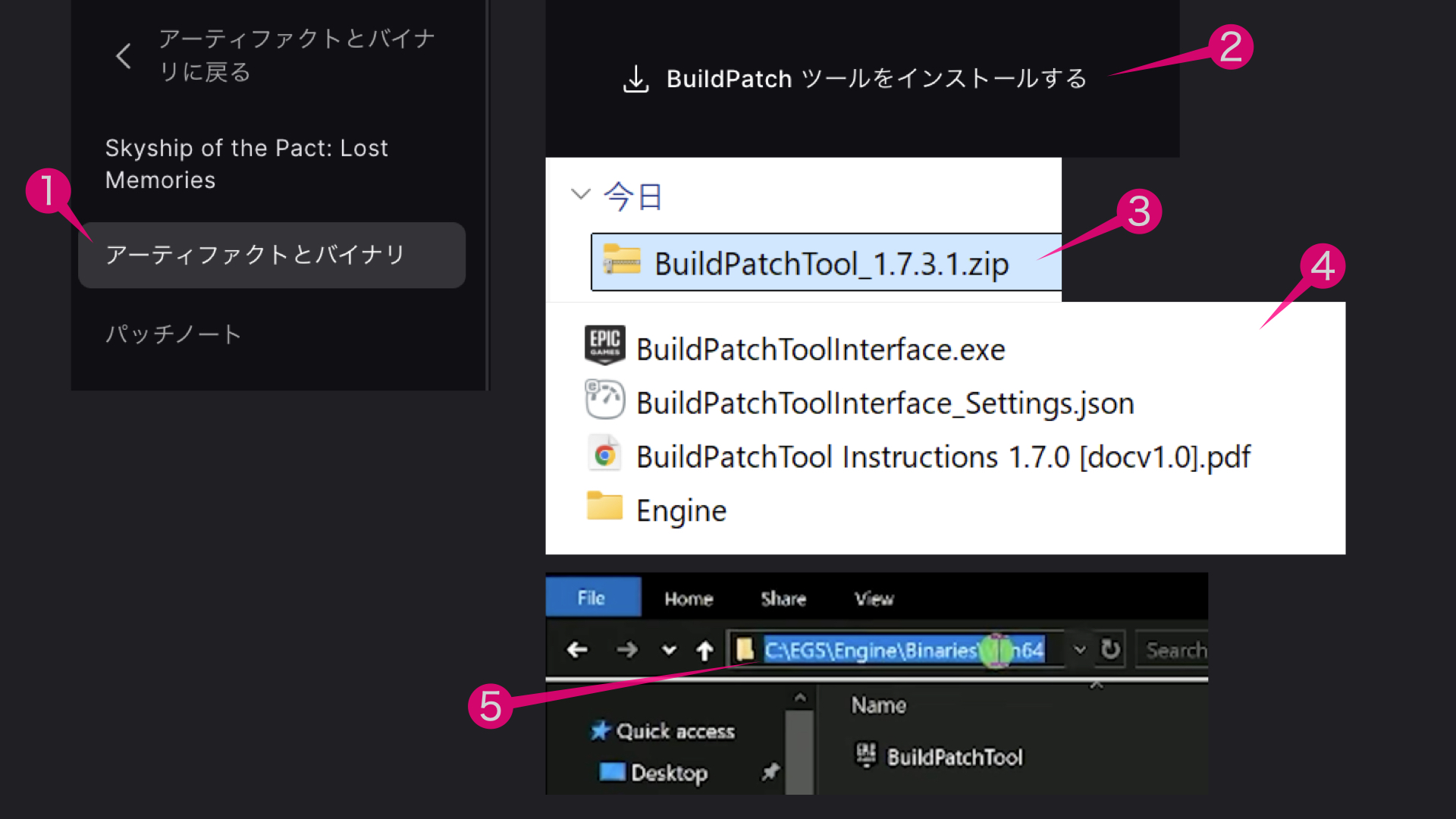 - BuildPatch ツールをダウンロードしてビルドをアップロードする