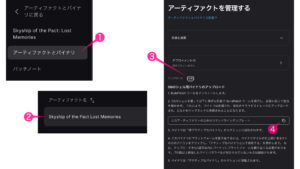 - ゲーム名のアーティファクトをクリックすると、アーティファクトを管理する画面へ遷移します。