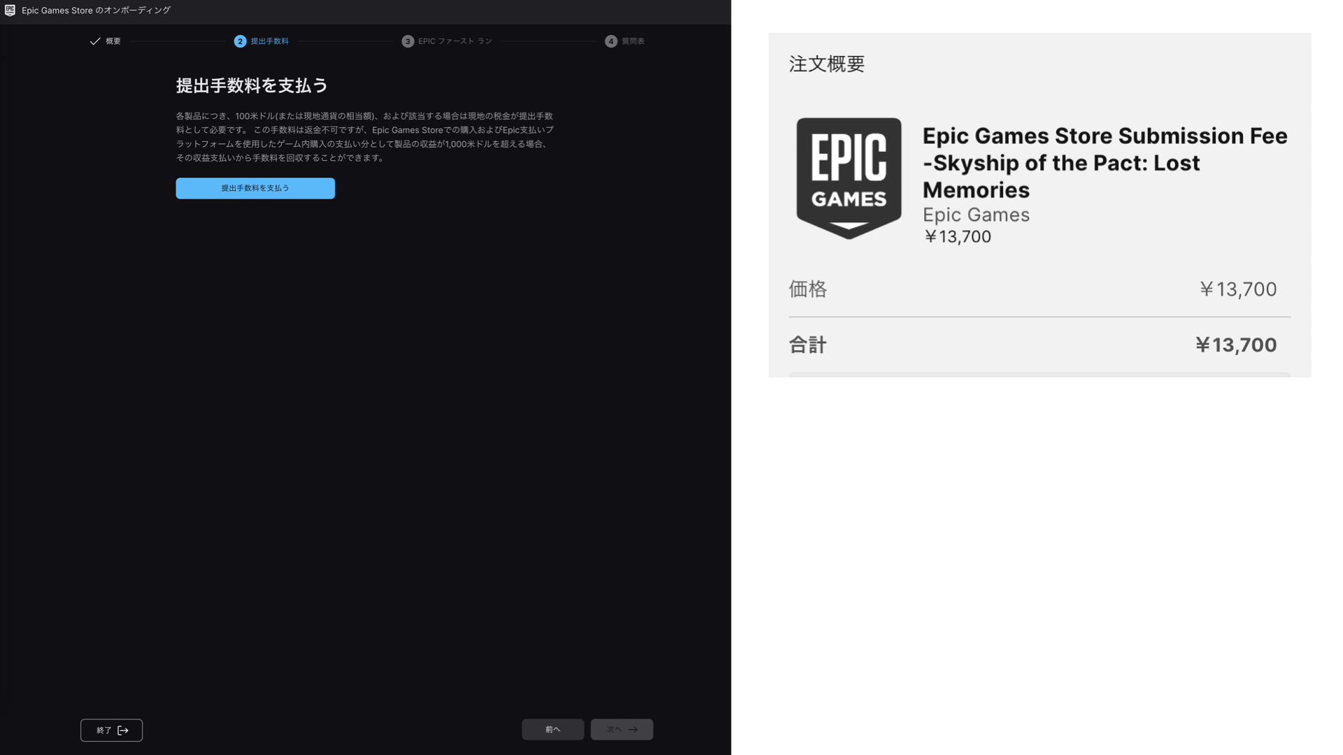 Epic Games Storeのオンボーディングどうだったでしょうか?ストアページの作成に至るまでの過程が長くて、ようやくか?といった印象ではないでしょうか?