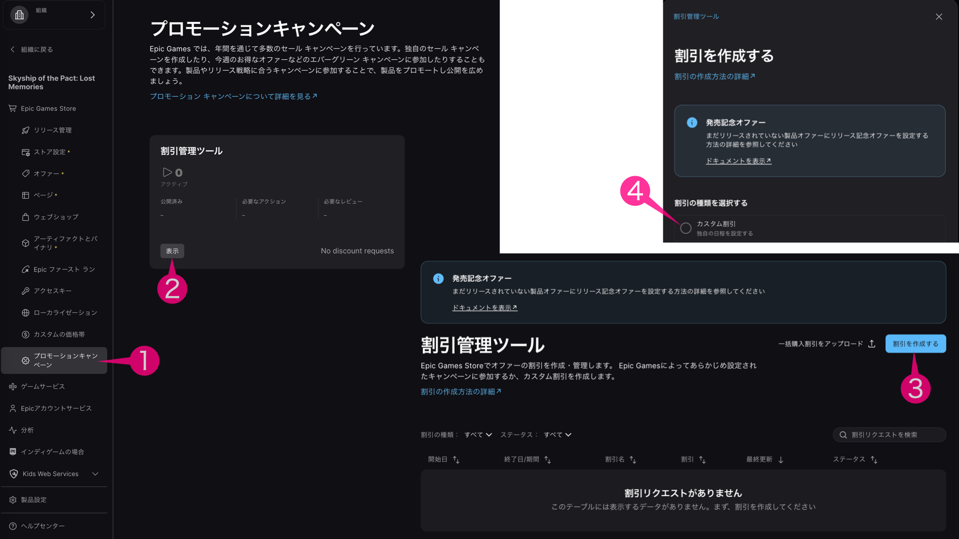 ポイントはEpicの承認を得る必要があるとのことなので少なくとも2〜3日前に割引を設定しておくのが良いと思います。(特にローンチ割引をする場合)