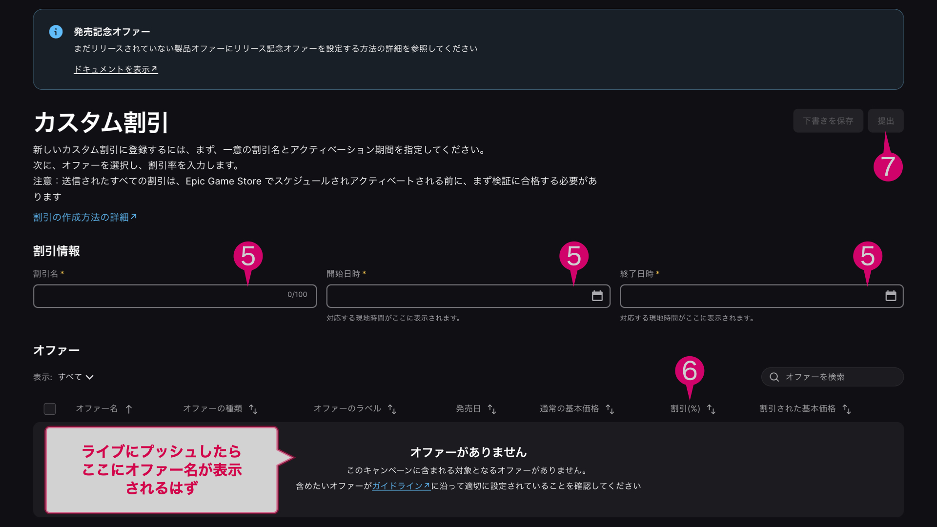 6. オファーがライブにプッシュされていれば、下の図のオファーがありません。の部分に割引率を入力する場所が現れるはずです(予想)