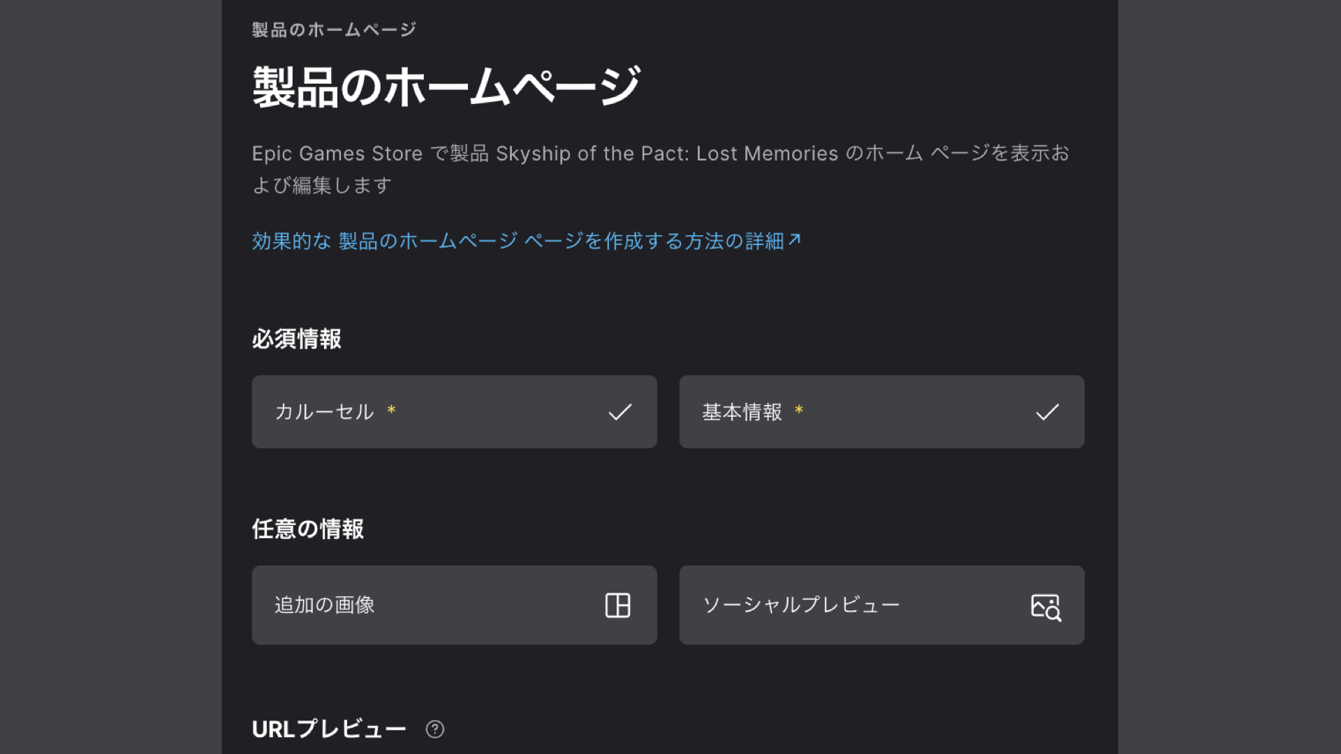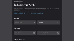 各要素を選択すると左側にEpic Games Storeでのプレビューのようなモノが表示され、ストアページのどこを編集しているか?視覚的にわかるようになっています。
