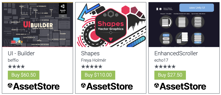 簡単にカスタマイズしたUIを作りたいならこれ。グラデーションからエッジのラウンド、円形ツール、UIのフィル設定まで、設定を変えることで自由自在なUIが作り出せる。Shapesと違って、オーバレイUIで機能するのでそのままキャンバスの子にして配置すると使用できるぞ。